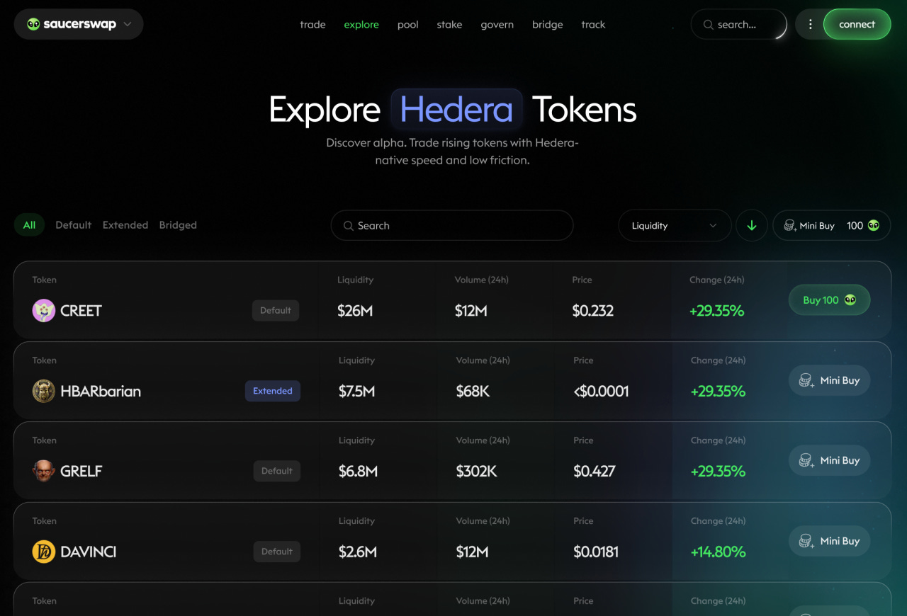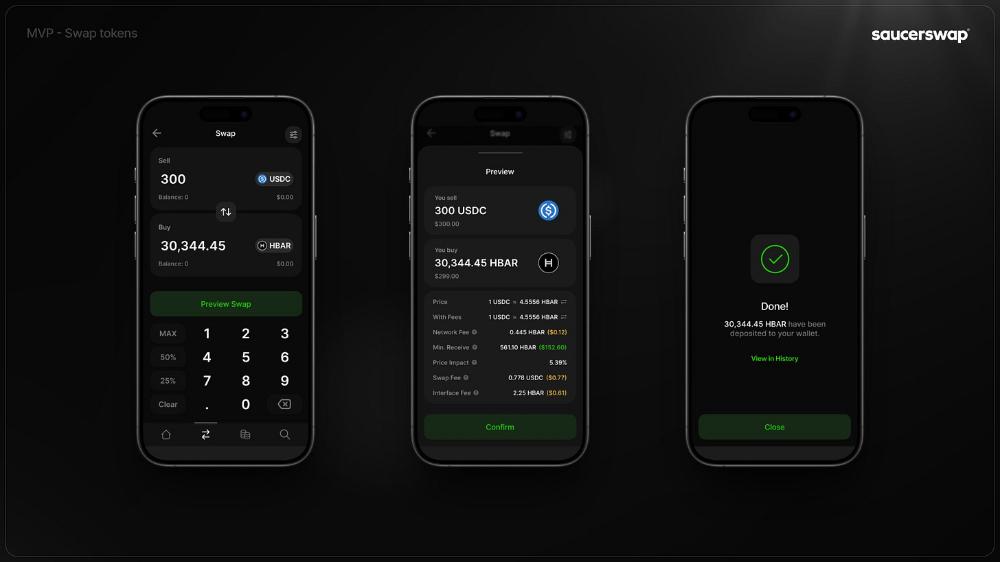 Todo lo que genera SaucerSwap se reinvierte en mejorar la plataforma: desde contratar ingenieros hasta pulir el diseño y promocionarla. No inflamos el suministro de tokens para financiar esto, preferimos ser claros y sostenibles con un modelo que beneficia a todos.¿Qué trae de nuevo la app móvil?