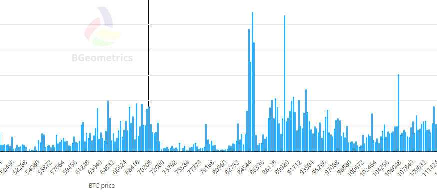 Zona de $90.000-$110.000: La mitad derecha del gráfico. Otra concentración importante. Estos son holders que compraron cerca del ATH y ahora están en pérdidas del 30-40%. Si el precio llega a retestear estos niveles, habrá presión de venta de gente que quiere salir del mercado y aprovechará para hacerlo sin pérdidas.