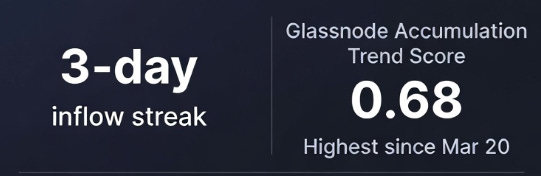 El Accumulation Trend Score de Glassnode ha alcanzado 0,68, el dato más alto desde marzo de 2020 (COVID). Esto refleja acumulación amplia en todo tipo de billeteras, especialmente en la cohorte de 10-100 BTC. Es un setup similar a fondos locales desde 2020. Paralelamente, las salidas de los exchanges están en el 3,2% en promedio de 30 días, señalando que las ballenas están moviendo sus bitcoins fuera de exchanges, mostrándonos una evidencia clara de acumulación silenciosa.